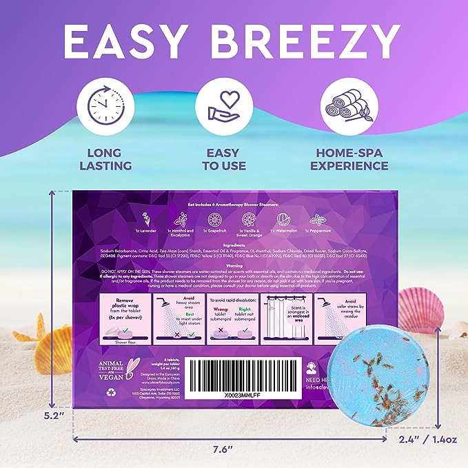 Cleverfy Shower Bombs are carefully crafted with the highest quality ingredients, including natural essential oils and soothing fragrances. Each box contains six unique shower bombs, ensuring a variety of invigorating and calming experiences. Simply place a shower bomb on the floor of your shower, allowing the steam to activate the aromatherapy oils and create a rejuvenating atmosphere.