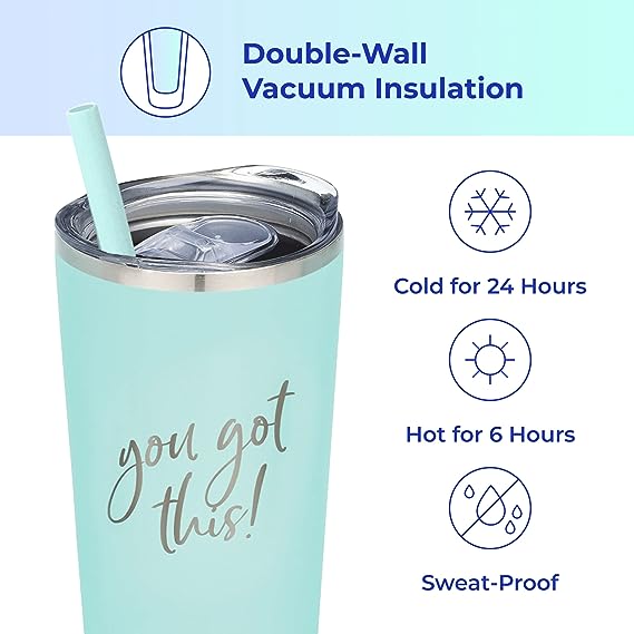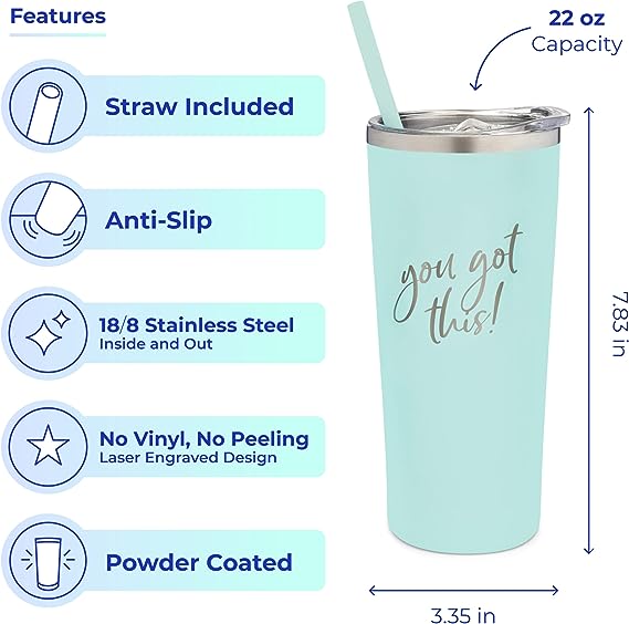 - Sleek and Durable Design: Crafted with premium quality stainless steel, the You Got This Tumbler ensures durability while maintaining an elegant appeal. The double-wall insulation keeps your beverage at the perfect temperature, whether you prefer a hot cup of coffee or a refreshing iced tea. With a capacity of 20 ounces, it’s the ideal size to fit comfortably in your hand while providing ample hydration wherever you go.